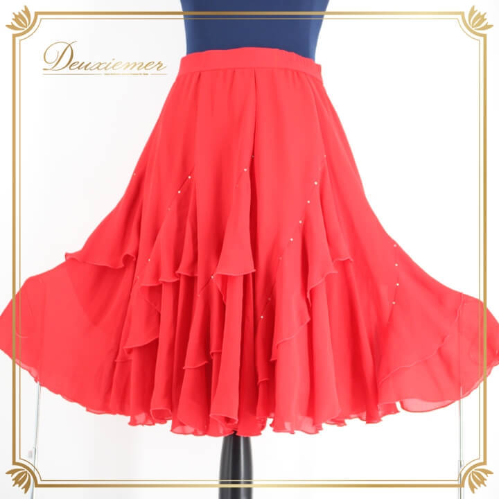 - 社交ダンス 衣装 スタンダード スカート レッスンウェア レディース オールシーズン レッド系 ラインストーン 赤 派手 シンプル かわいい