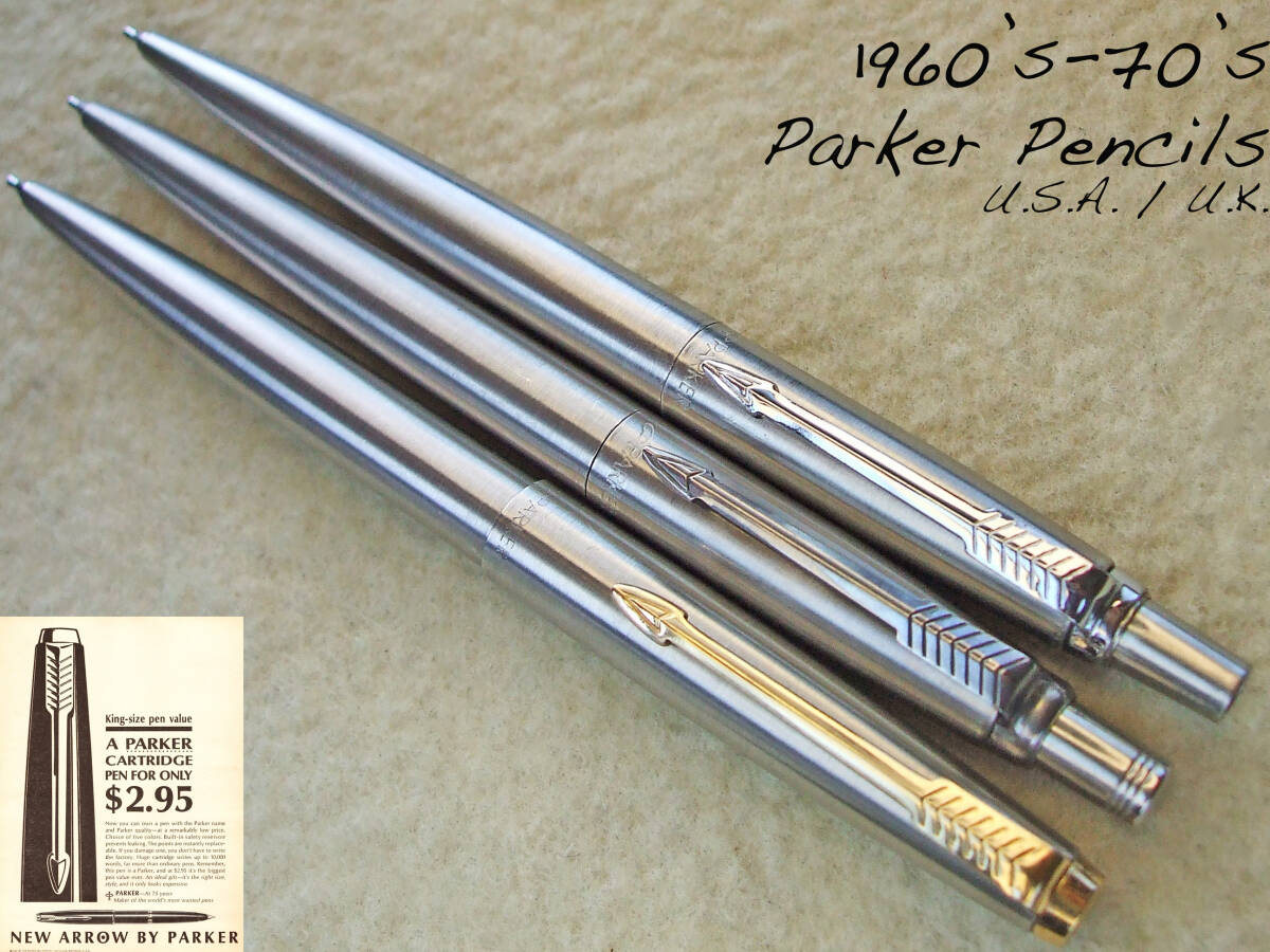 - ◆美品◆ 1960-70年代製 パーカー・ペンシルセットx3 USA/UK◆1960’s-70’s Parker Pencils Brushed Steel U.S.A. / U.K.◆