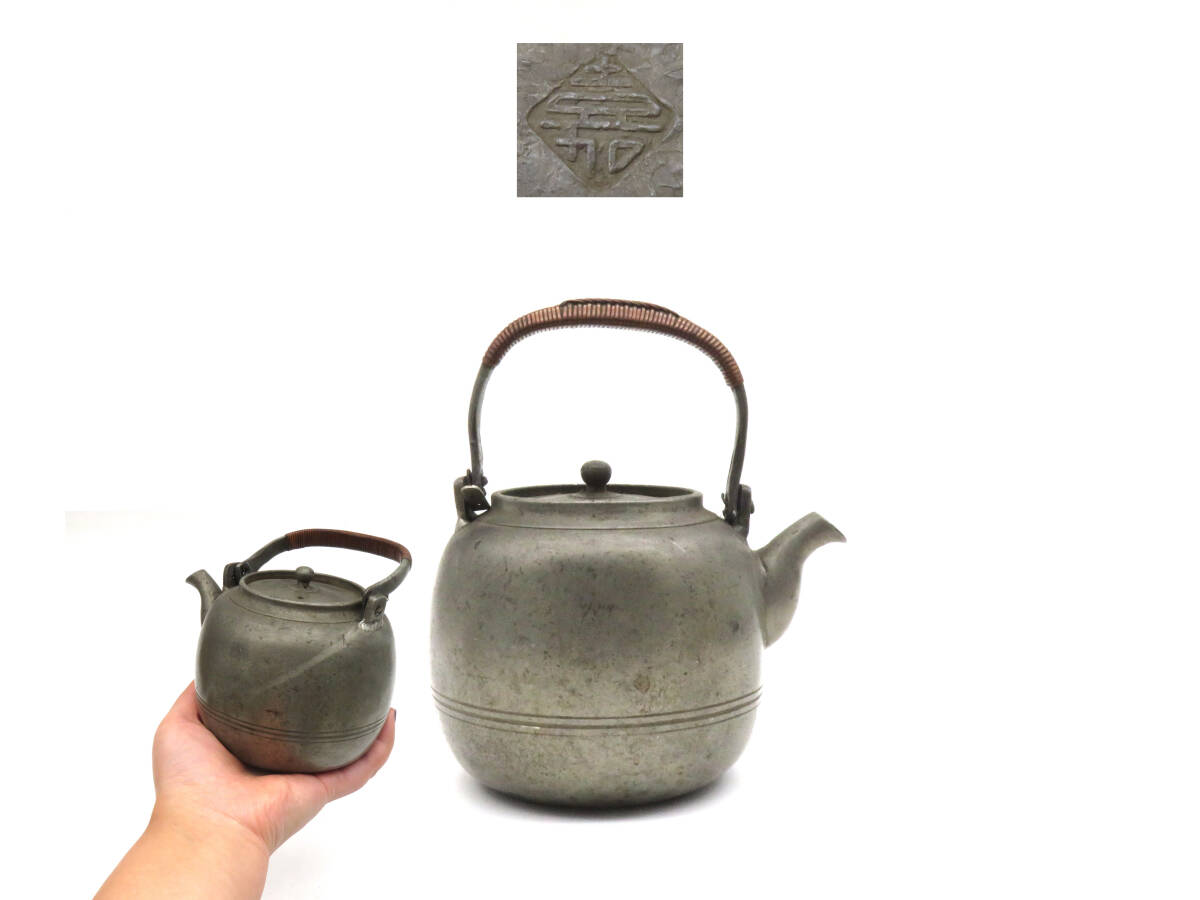 - K8809 錫製 急須 湯沸かし 錫瓶 重さ約539.5g 在銘 刻印 錫器 金属工芸 煎茶道具 時代物 古美術 茶道具 鉄瓶