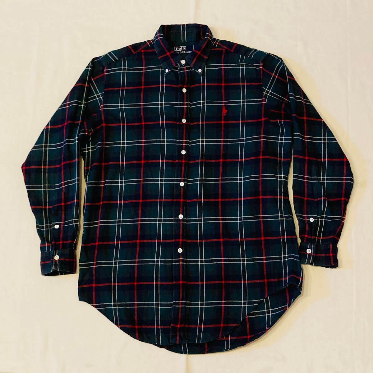 - Polo by Ralph Lauren ラルフローレン ボタンダウン ロングスリーブ シャツ グリーン レッド系 チェック柄 M タイ製