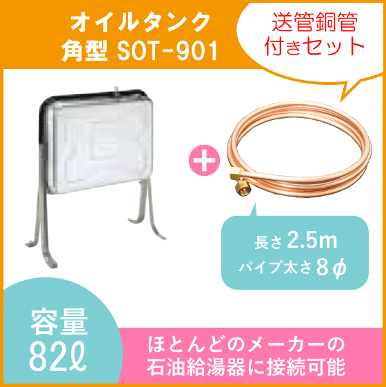 - 灯油タンク ステンレスオイルタンク 角型 送油銅管付き 石油給湯器 ボイラー用 SOT-901
