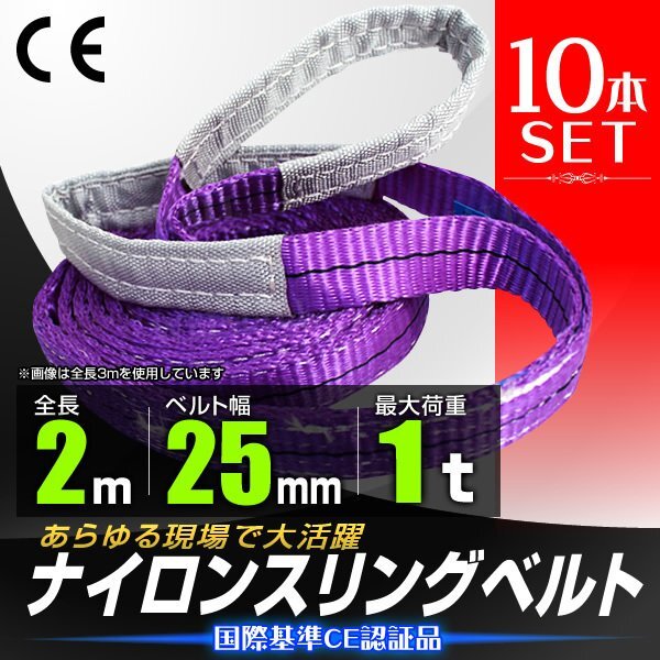 - 【10本セット】スリングベルト 耐荷重1000kg 長さ2m×幅25mm 両端アイ型 ナイロン スリング ベルト 玉掛け 荷揚 荷吊りベルト 牽引 高耐久