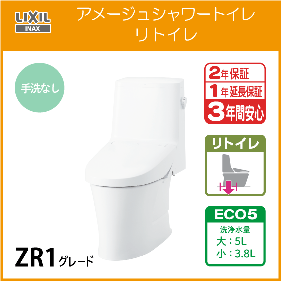 - 一体型便器 アメージュシャワートイレ リトイレ(手洗なし) アクアセラミック仕様 ZR1グレード YBC-Z30H DT-Z351H リクシル LIXIL INAX