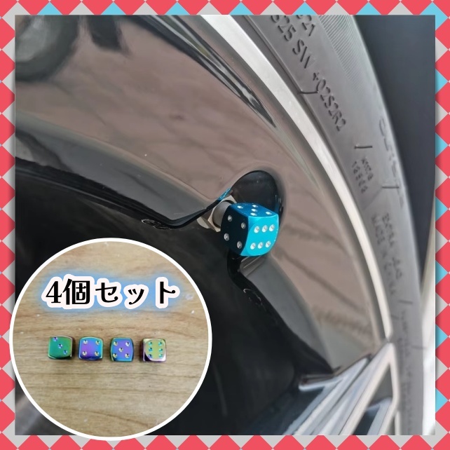 > 4個 エアバルブキャップ ダイス サイコロ タイヤバルブ ホイール バルブ チタンカラー 焼き色 アルミ キャップ カバー 自転車 原付 汎用