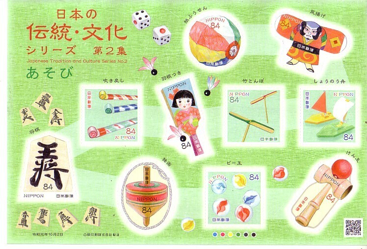- 「日本の伝統・文化 シリーズ第2集 あそび」の記念切手です