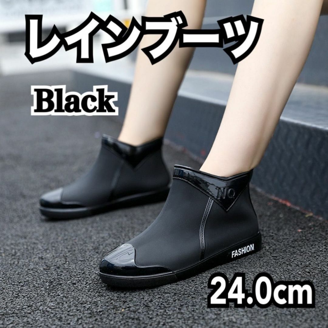 - 24.0cm レインブーツ ブラック 長靴 雨 靴 防水 レインシューズ 韓国