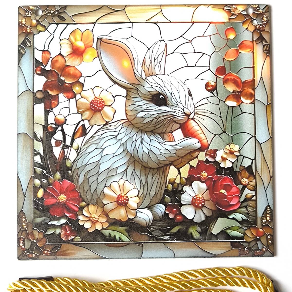 - 【にんじんを食べる白ウサギ】アクリルプレート 飾り サンキャッチャー 紐付き オブジェ お洒落 壁や窓辺の飾りに◎◎