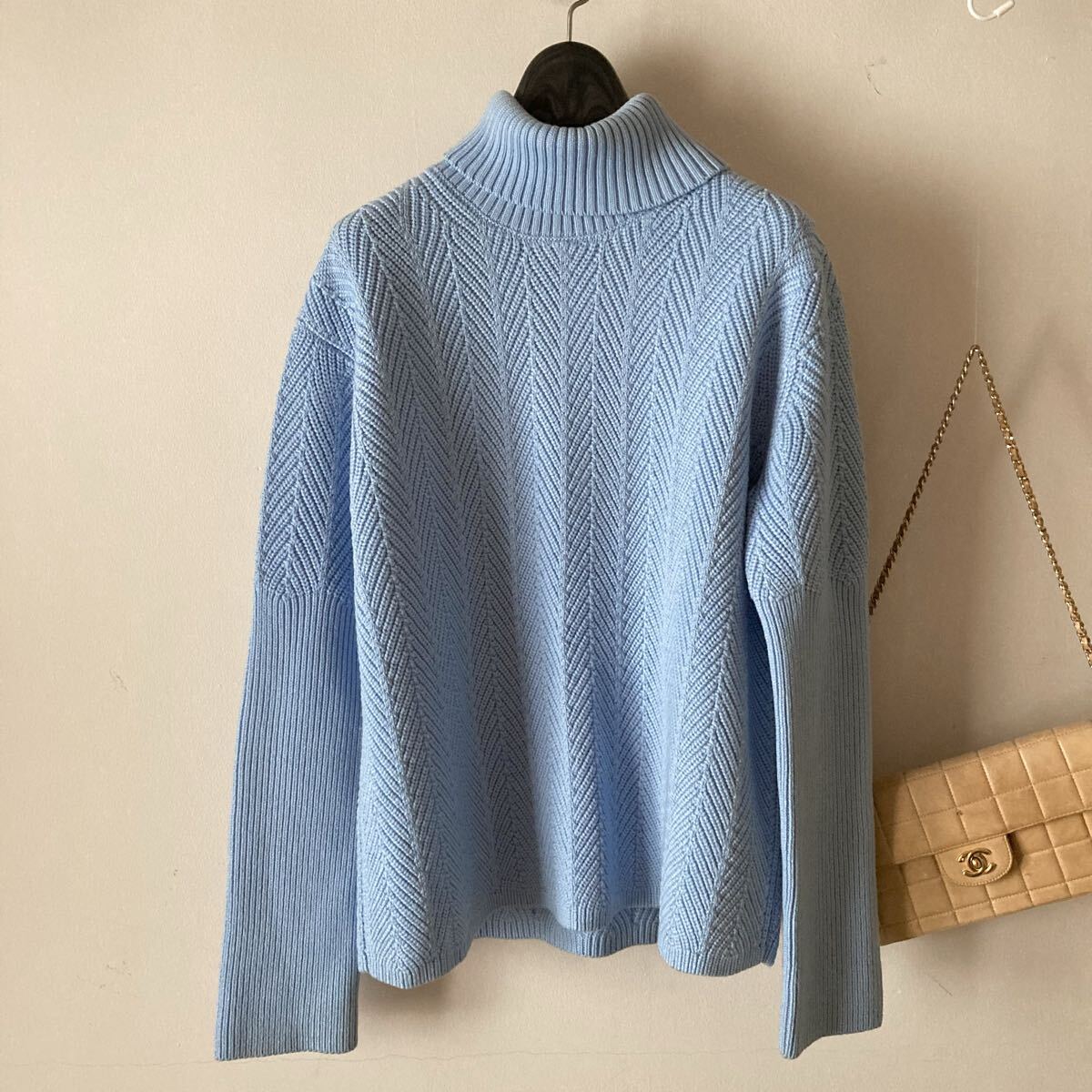 - セオリーリュクス*とろとろウール タートルネックヘリンボーンニット*水色