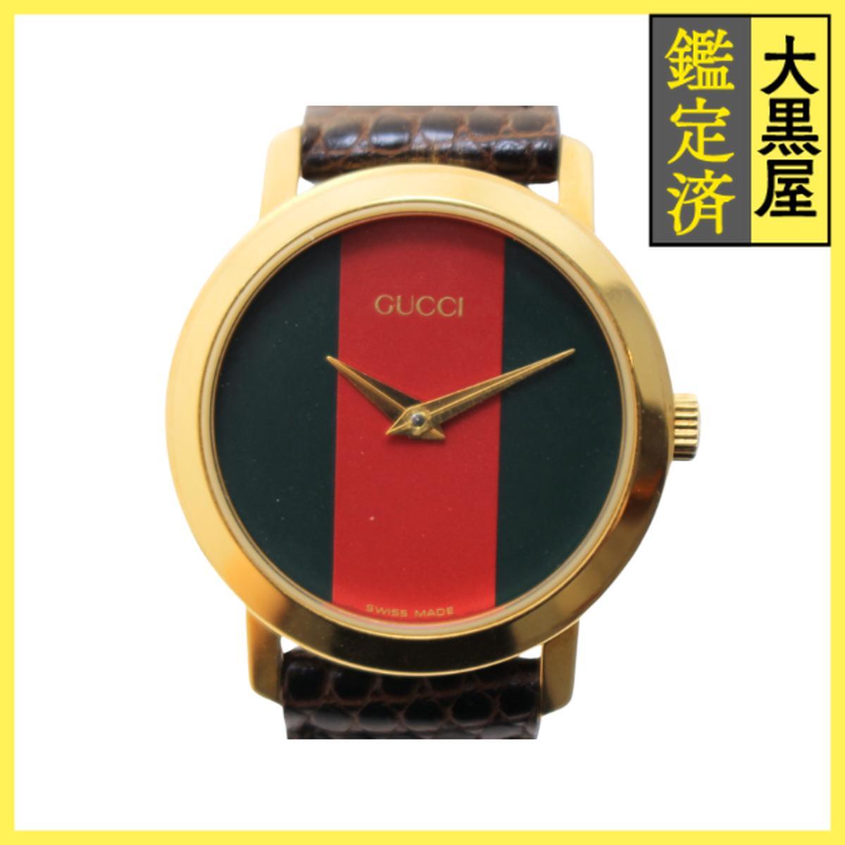 - Gucci グッチ - 2200L GP/カワ グリーン/レッド 女性用/Ladies watches