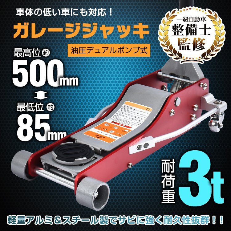 - 1円 ガレージジャッキ 油圧式 フロアジャッキ 車 上 下 3トン ジャッキアップ 3t 2ポンプ デュアル タイヤ交換 油圧ジャッキ 修理 ee328