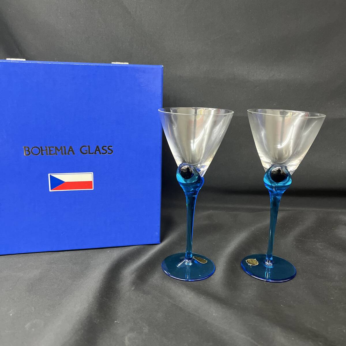 - 新品 未使用 ボヘミアガラス ワイングラス 青 ペア 旧チェコスロバキア