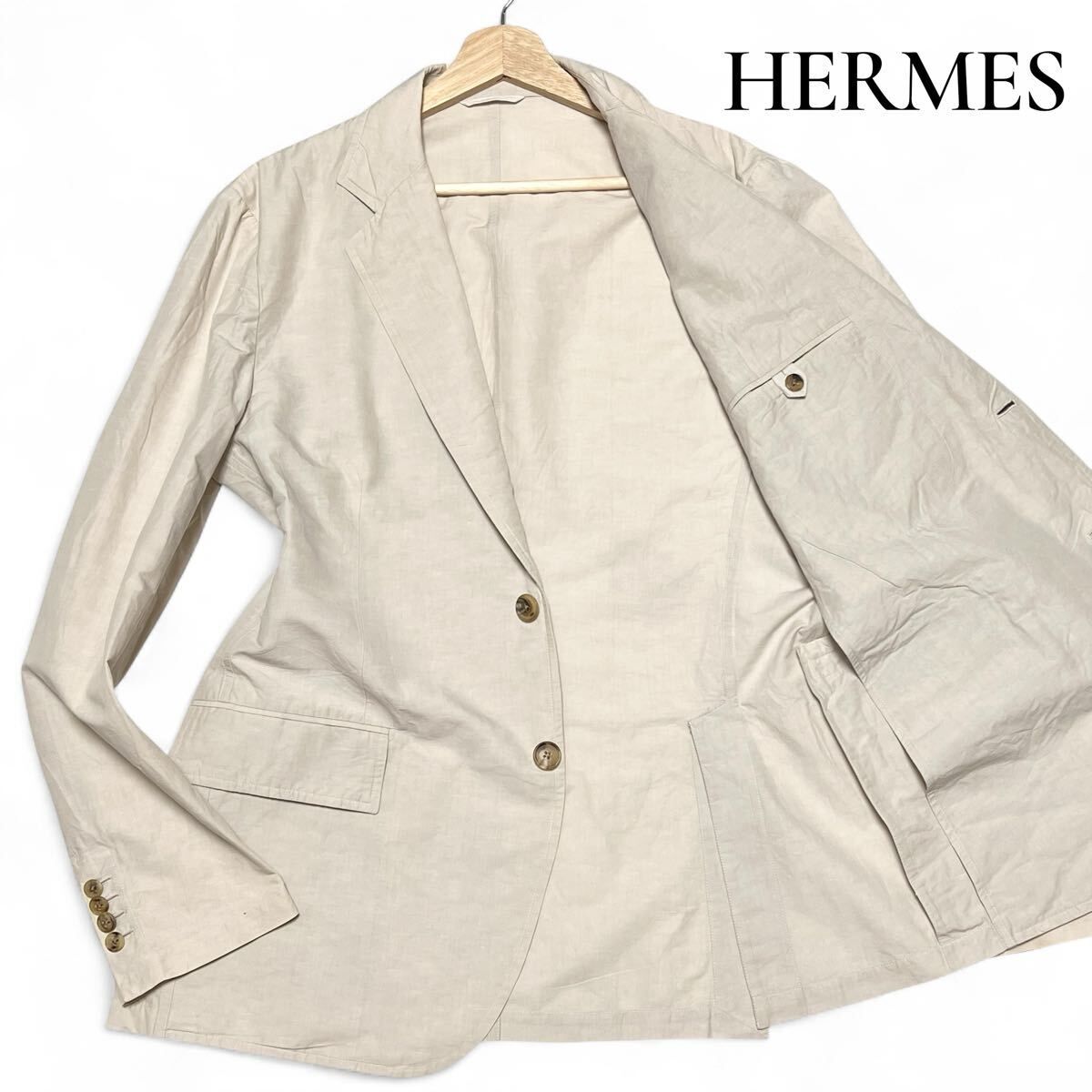 - 美麗品◎XLサイズ!!エルメス【着心地抜群!!】HERMES アンコン ジャケット ベージュ リネン×コットン イタリア製 2B 美シルエット◎メンズ