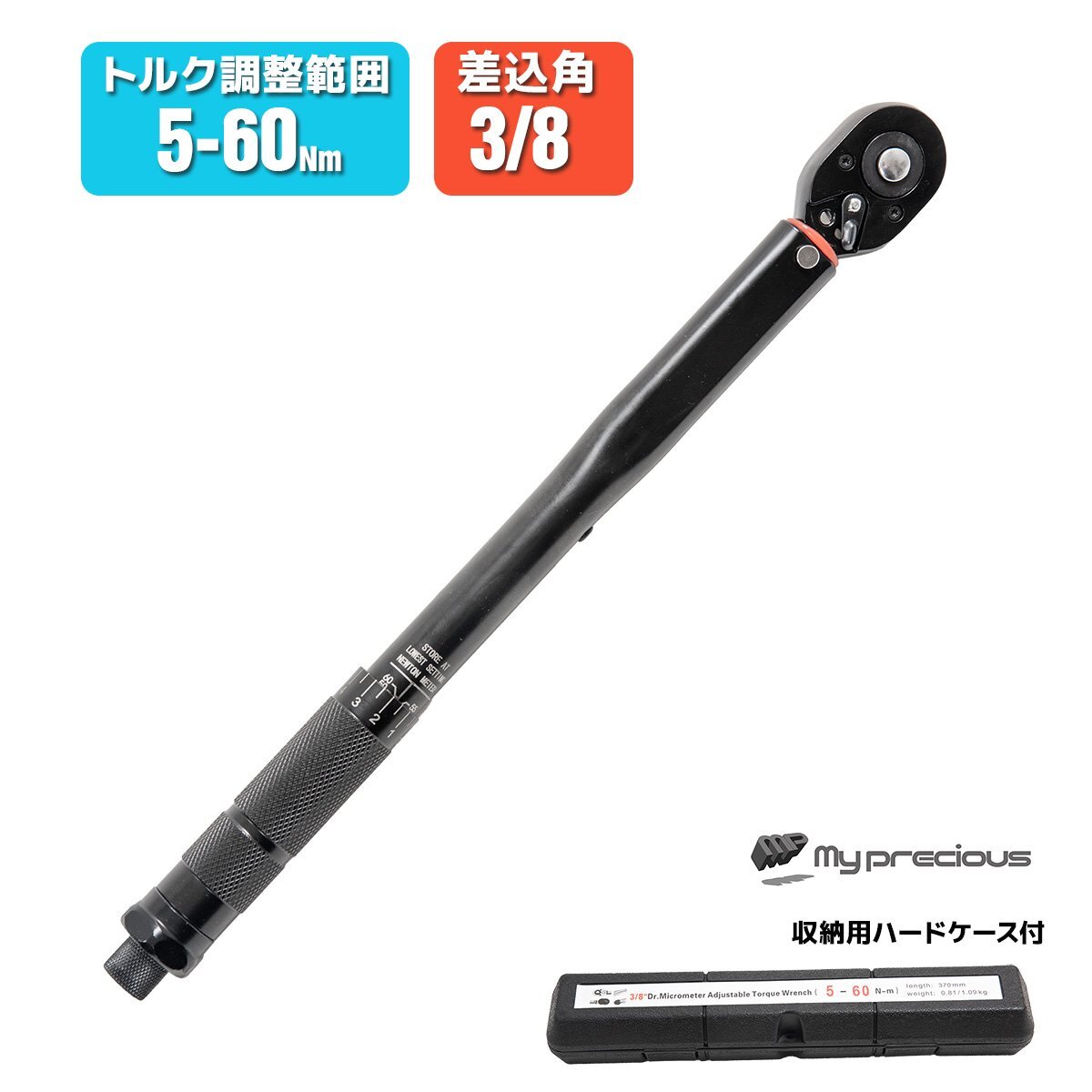 - 【送料無料】プリセット式 トルクレンチ 差込角3/8” トリク調整 範囲5-60Nm レンチ 足回り タイヤ交換 工具★収納ケース付
