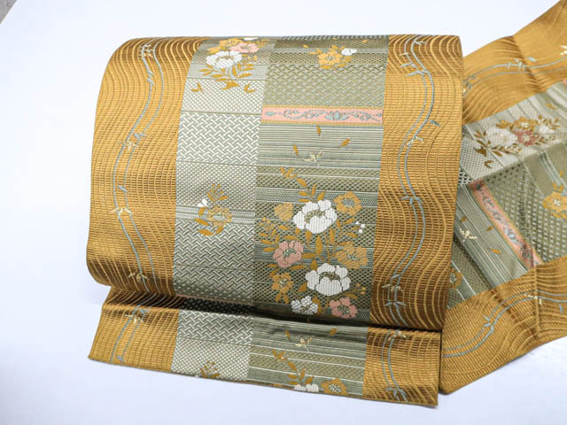 - 《京都一輝堂》【着物】八寸名古屋帯 本場筑前博多織 金糸 牡丹文 24b-2672