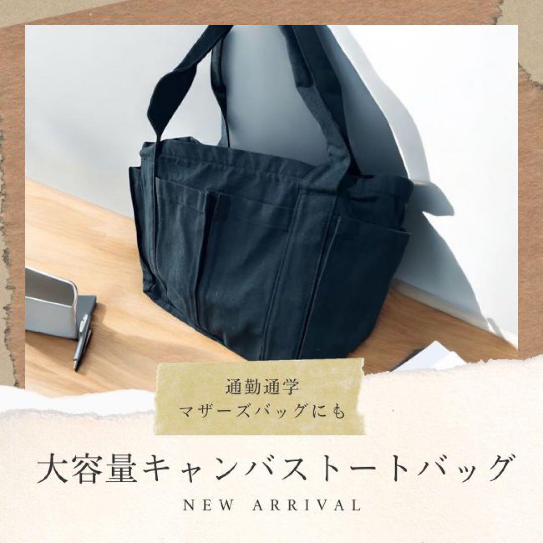 - 【キャンバストートバッグ】 大容量 黒 男女兼用 ブラック