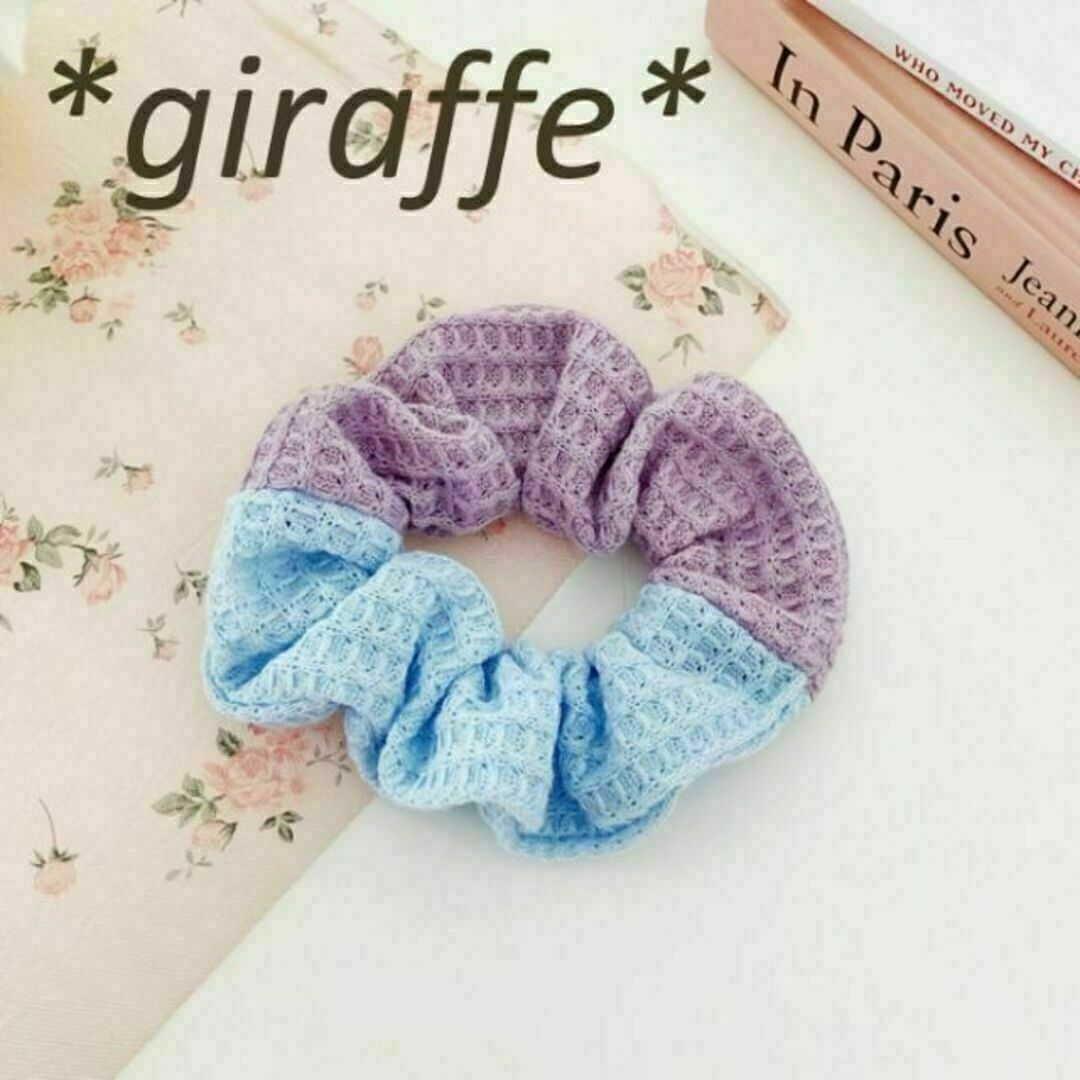 - E224 匿名配送 シュシュ 髪ゴム ヘアゴム カラー切り替え ワッフル パープル 水色