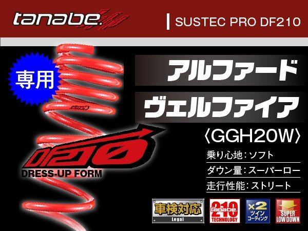 - タナベ ダウンサス アルファード/ヴェルファイア GGH20W/GGH25W/2WD/4WD 【08/05~15/01】 DF210 トヨタ SUSTEC GGH20WDK