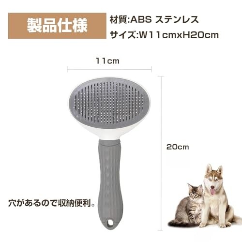 - DCTONG ペットブラシ 犬猫兼用 ワンプッシュで毛取り 短長毛OK 痛くない マッサージ 滑り止め グレー