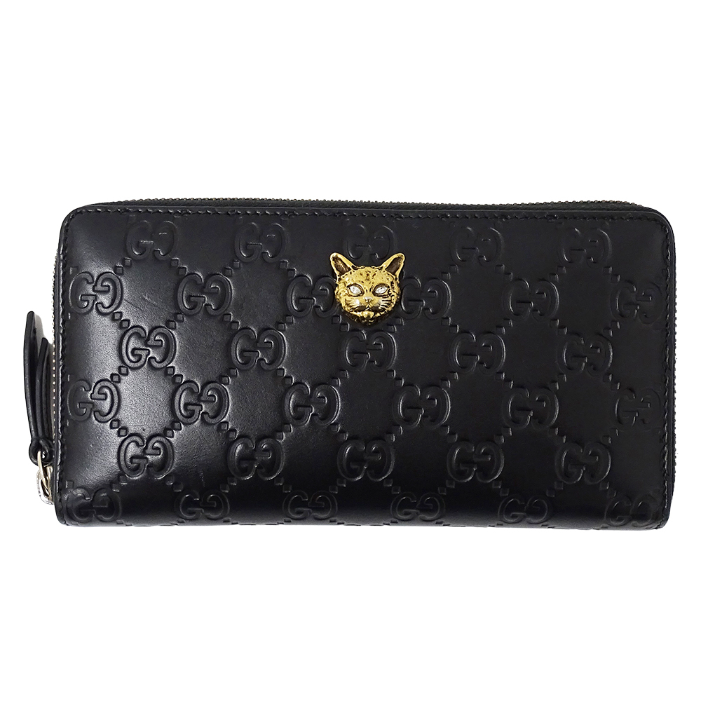 > グッチ GUCCI 財布 レディース ブランド グッチシマ 長財布 リネアキャット レザー ブラック 548058 ネコ 黒 ラウンドファスナー おしゃれ