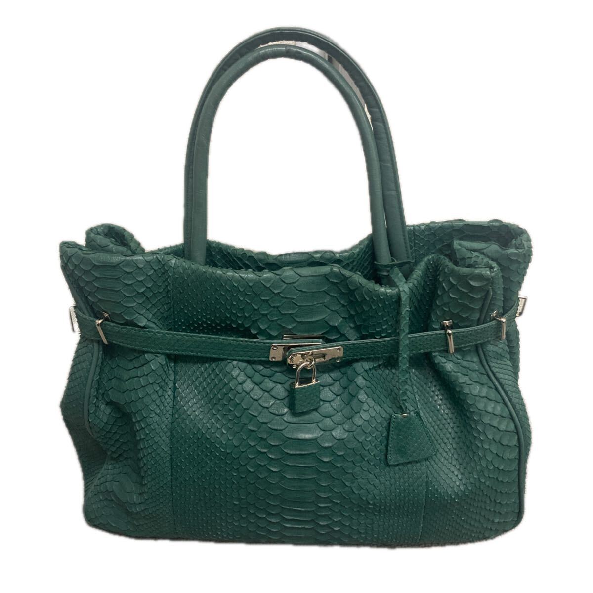 - パイソン ハンドバッグ グリーン エキゾチックレザー 蛇革