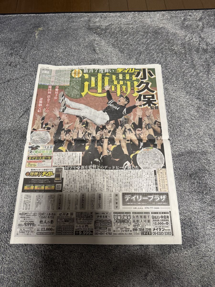 - ソフトバンク優勝 2025年 9月 28日 ディリースポーツ新聞 新品未使用!。