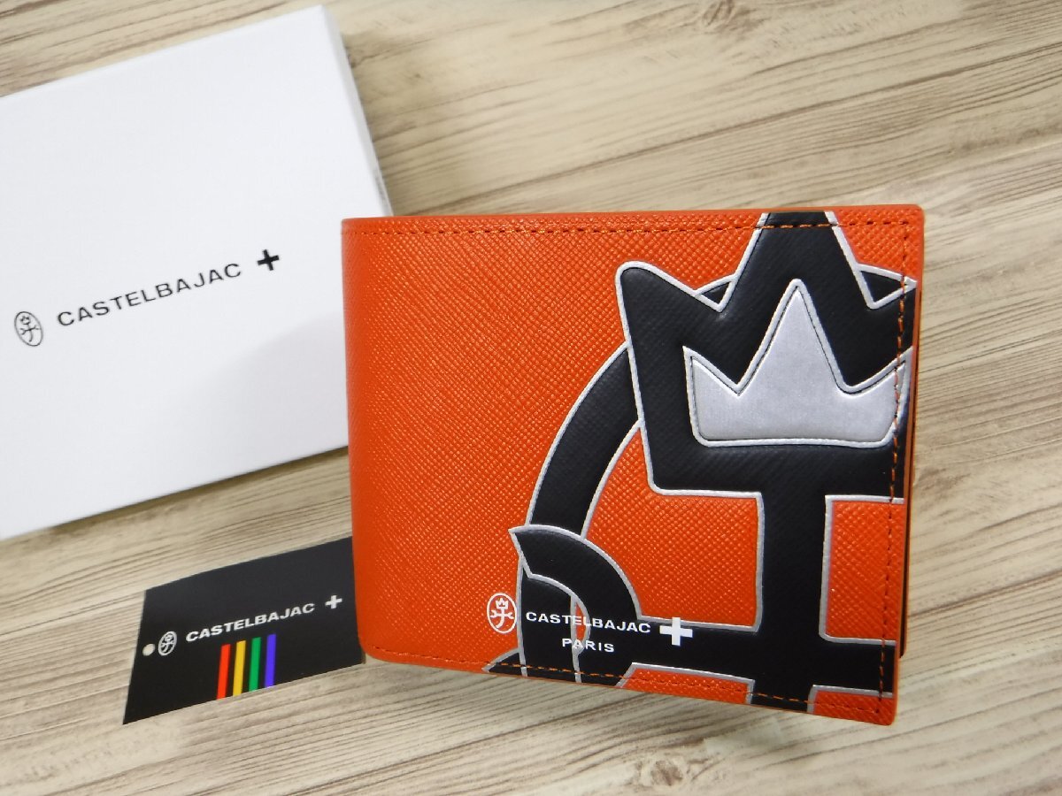 - QQ646 カステルバジャック 定価1万8700円 新品 二つ折り財布 牛革 カード4枚収納 オレンジ ウプラ 054622 メンズレディース コンパクト財布