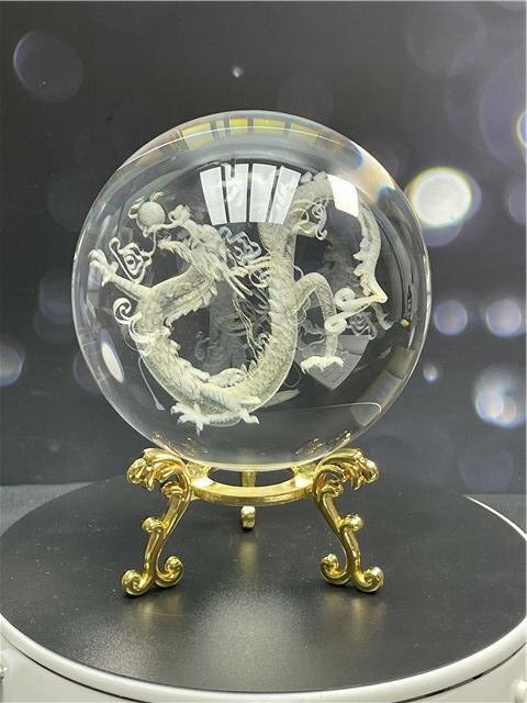 約:96mm 超綺麗龍入りK9水晶丸玉186B1-39B27b拍卖