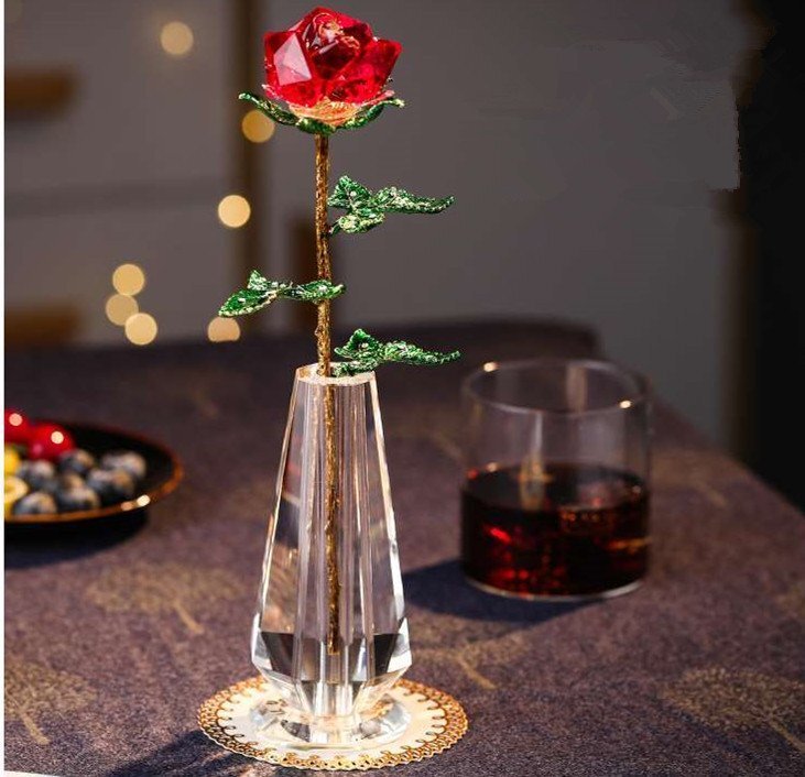 【限定品】超美品水晶のバラ置物(ロマンチックなプレゼント)1203-YS-115D