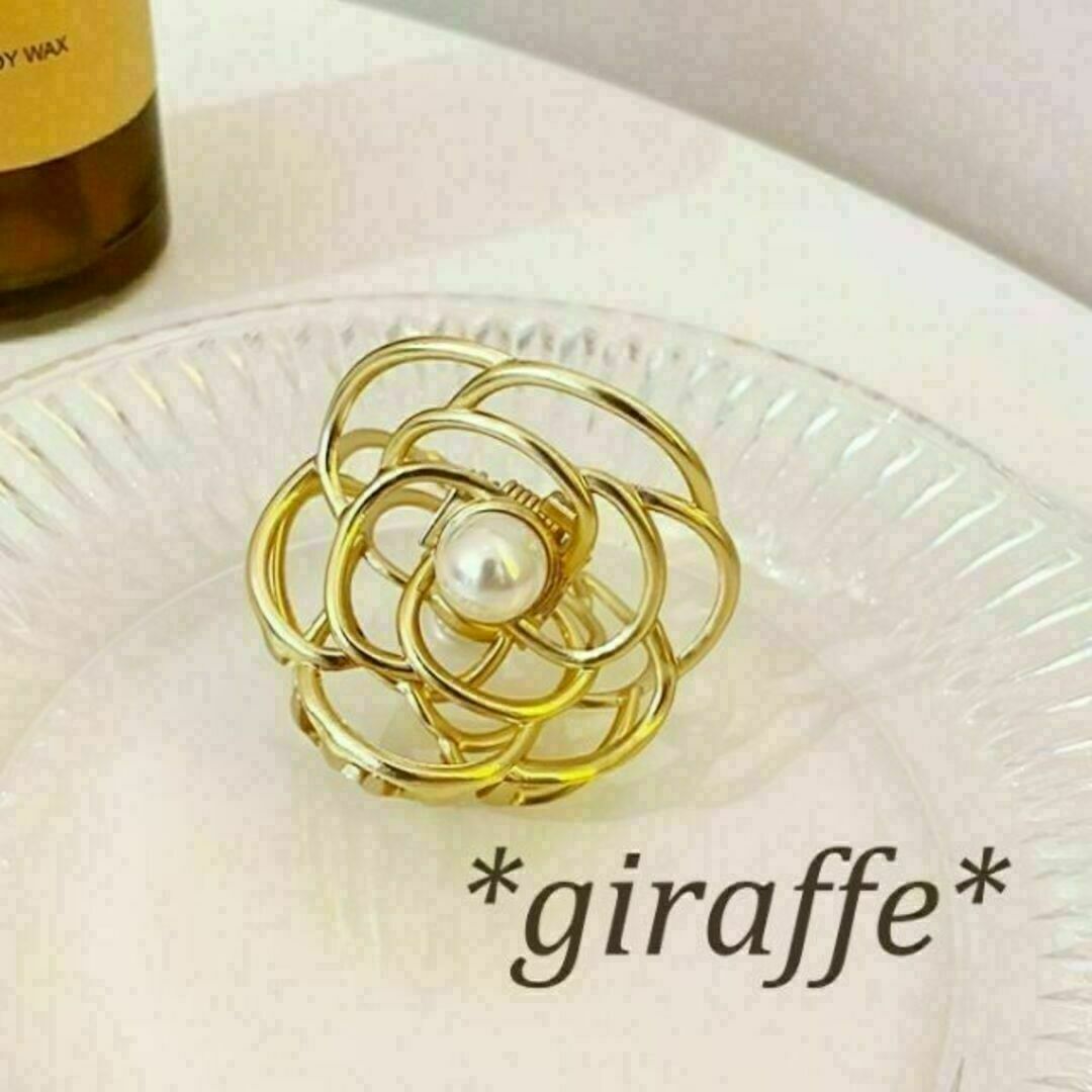 - E062 バンズクリップ ゴールド フラワー お花 ヘアクリップ パール ハーフアップ まとめ髪 バレッタ ヘアアクセサリー
