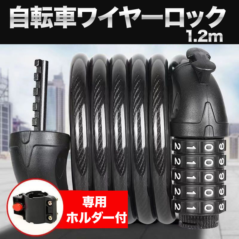 > 自転車 ワイヤーロック 1.2m ダイヤル式 5桁 防犯 盗難防止 高強度 防水 防錆 ナンバー 鍵 カギ ワイヤー ロードバイク 原付 MTB バイク 2