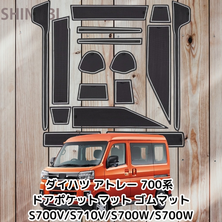 > ダイハツ アトレー 700系 ドアポケットマット ゴムマット S700V/S710V/S700W/S700W 15枚 ホワイト ハイゼットカーゴ s700v 白