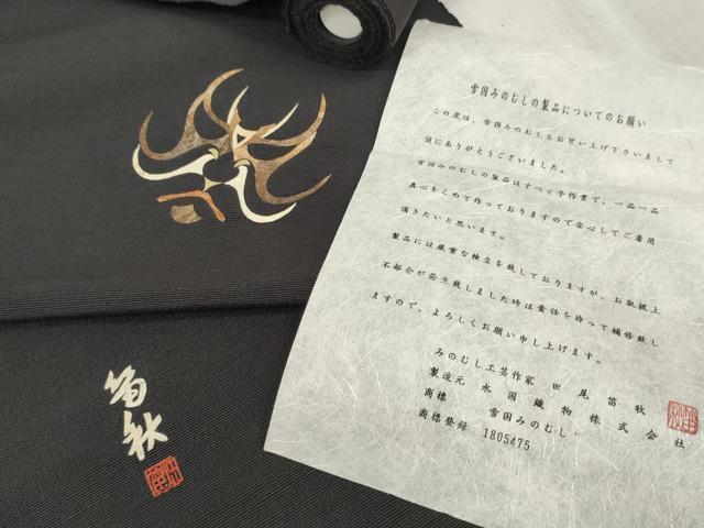 - 平和屋着物▼蓑虫工芸作家 田尾笛秋 名古屋帯 帯反物 結城紬織 隈取 紫黒色 証紙付き 逸品 未使用 DAAW7042zzz