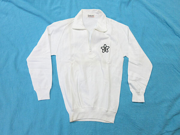 - 体操服★小学校★襟付き チャック付き 校章付き 長袖Tシャツ★Kanebo カネボウ★ホワイト 白★2Sサイズ★シミあり
