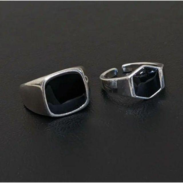 - リング メンズ 2セット シグネット オニキス調 シルバー 黒石 印台 指輪