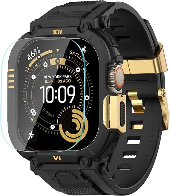 > Apple Watch Ultra 3/2/1 スポーツ TPU バンド(男性向け)-49mm サイズ対応、丈夫なメタルバンパーケース付き アップルウォッチ