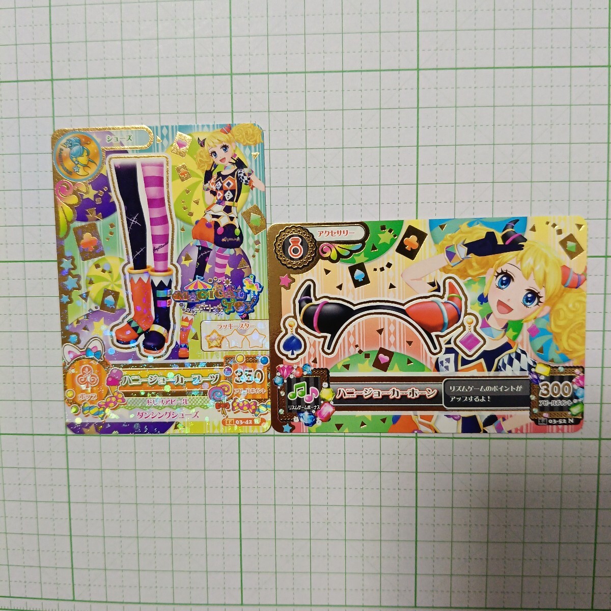 - アイカツ コーデ アクセ アイカツカード データカードダス ハニージョーカーブーツ 14 03-42 R ハニージョーカーホーン 14 03-52 N