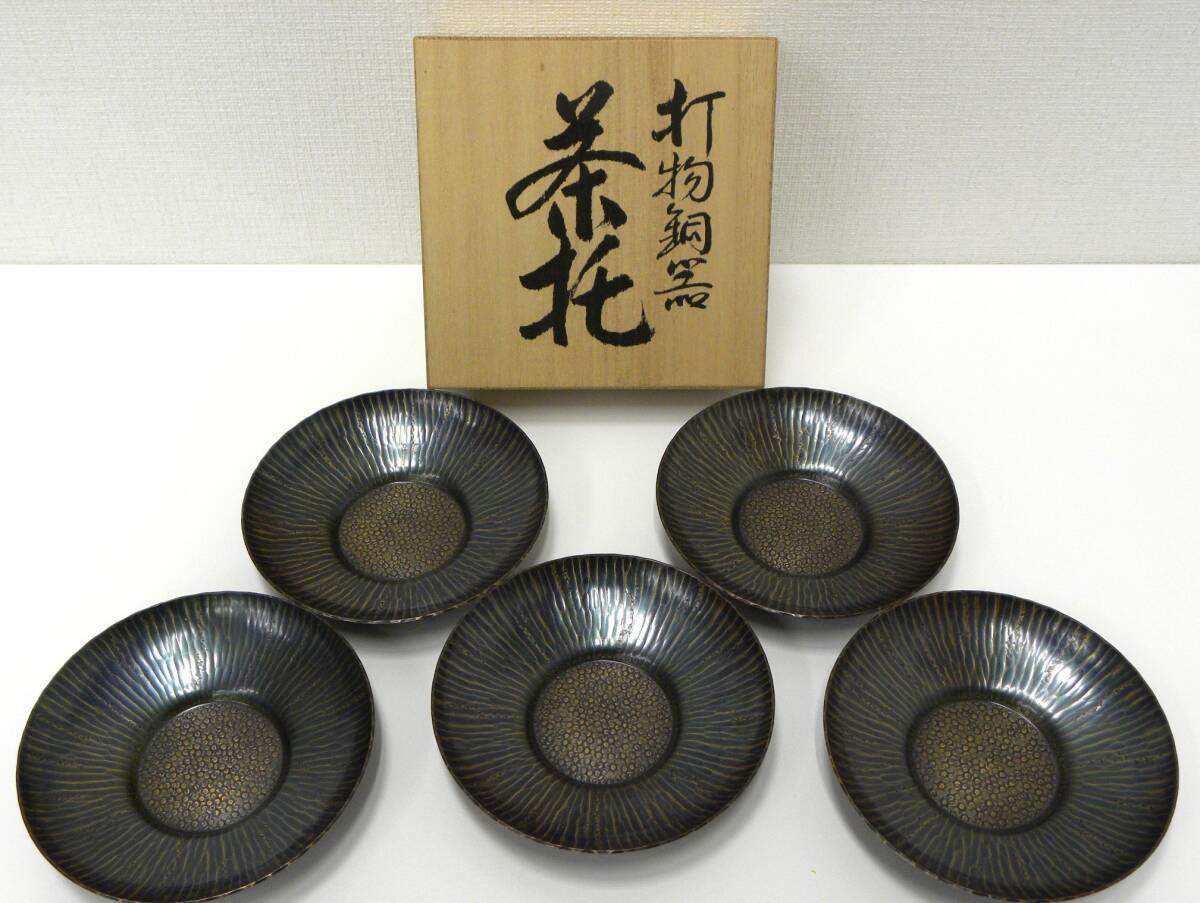 - 工芸品祭 食器祭 打物 銅器 茶托 茶器 茶道具 箱入 5客 煎茶 銅製 銅器 銅