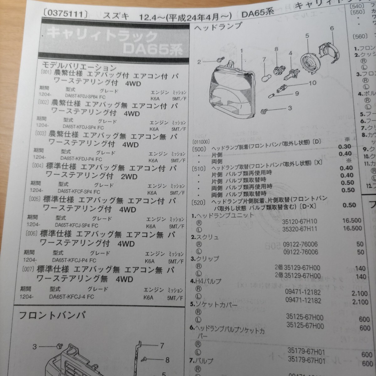 - ■■【パーツガイド】 スズキ キャリィトラック (DA65系) H24.4~ 2013年後期版 【絶版・希少