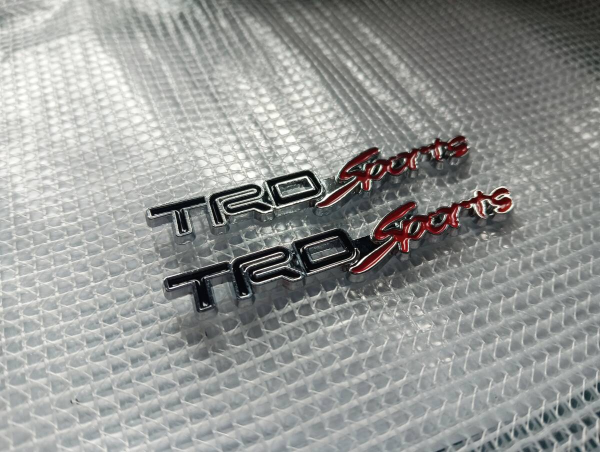 - 【ゆうパケット送料込】TRD Sports ミニエンブレム(横6.5cm縦1.1cm) 2枚組 黒×赤×銀 ① ミニサイズ