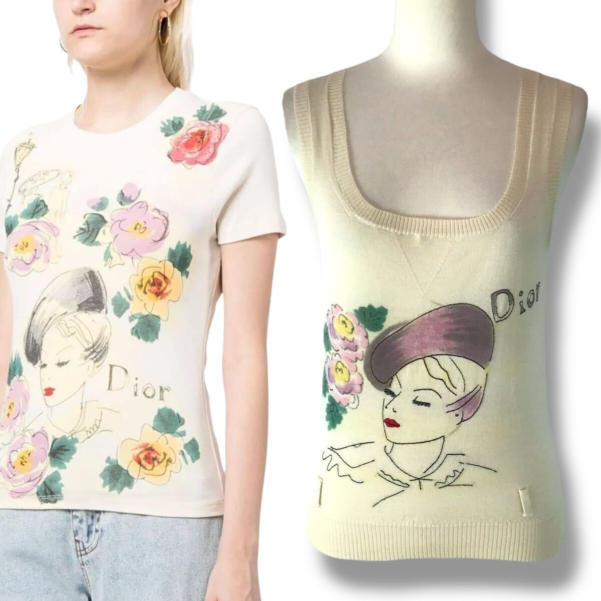 > c29 レア 希少 Christian Dior John Galliano 2005 ディオール ガリアーノ期 ノースリーブ ニット トップス 38 フランス製 Vintage 正規品