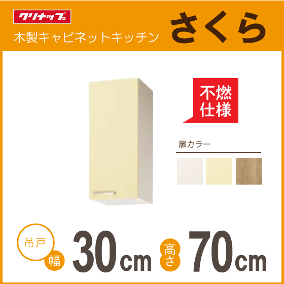 > 吊戸棚(不燃仕様) クリナップ さくら 幅:30cm 高さ:70cm WTAT-30MFL WTAT-30MFR WTAY-30MFL WTAY-30MFR WT4B-30MFL WT4B-30MFR ★