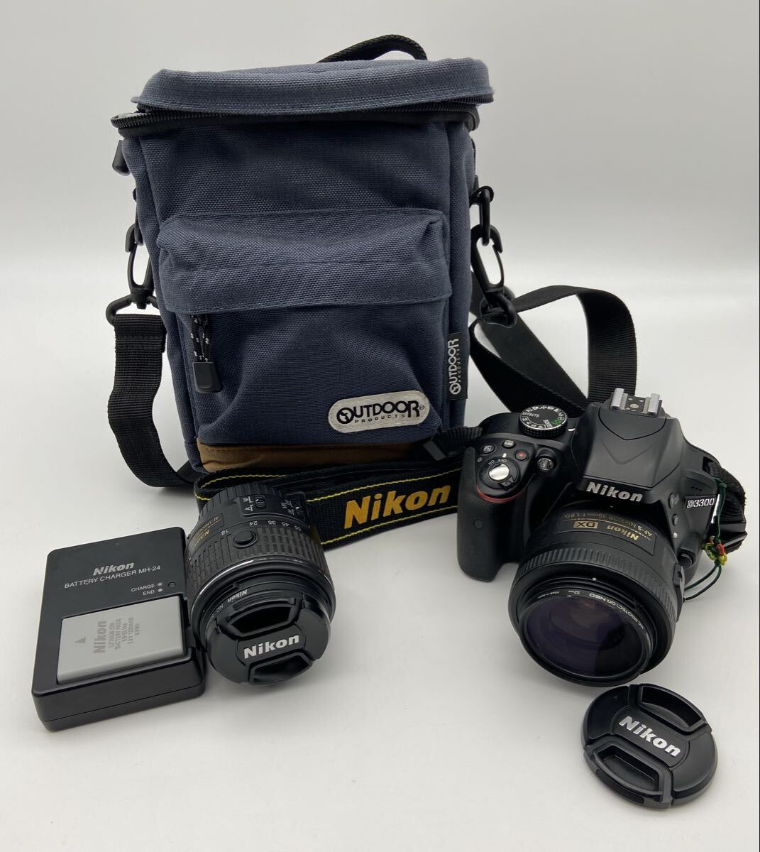 - △ Nikon デジタル一眼レフカメラ D3300 レンズセット Nikon DX AF-S NIKKOR 35mm/Nikon DX VR AF-S NIKKOR 18-55mm 現状品