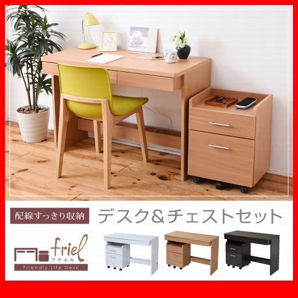 - 机★シンプルデスク 2点セット/パソコンデスク キャスター付きワゴン/配線 収納/SOHO ワークデスク/濃茶 ナチュラル 白/sgta-0125/即決/zz