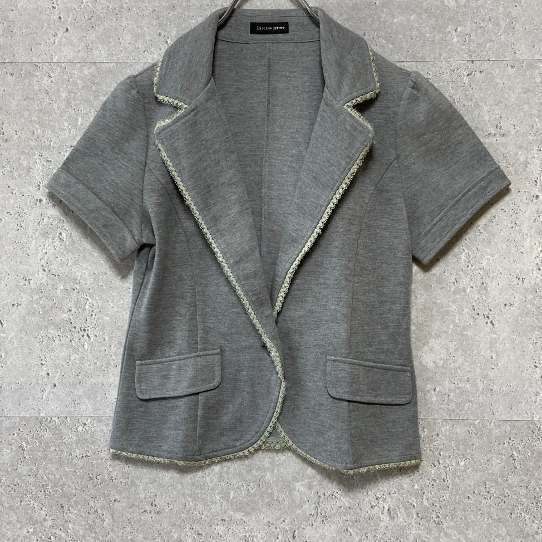 - ラセーヌプリヴェ(M)半袖テーラードジャケット*伸縮性*パイピング*グレー