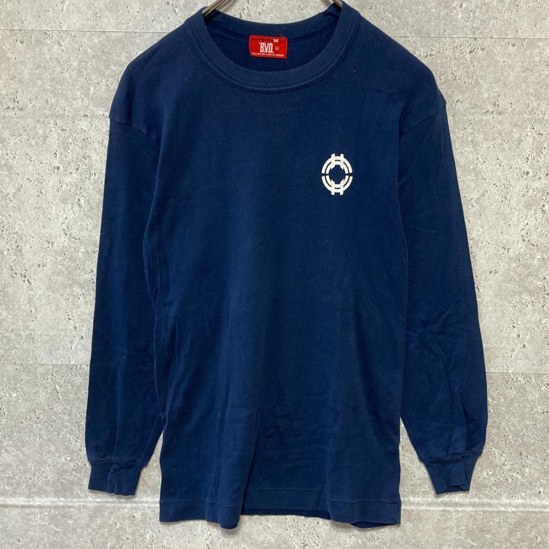 - 【B.V.D.】ビーブイディー(L)長袖カットソー*ロンT*胸ロゴ*伸縮性*紺