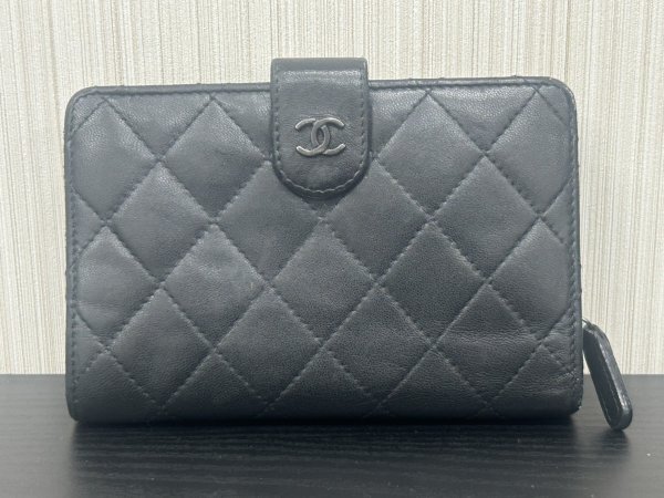 > CHANEL シャネル マトラッセ ラムスキン 折財布 ココマーク シールあり 14番台 ブラック ジッパー ブランド財布 現状