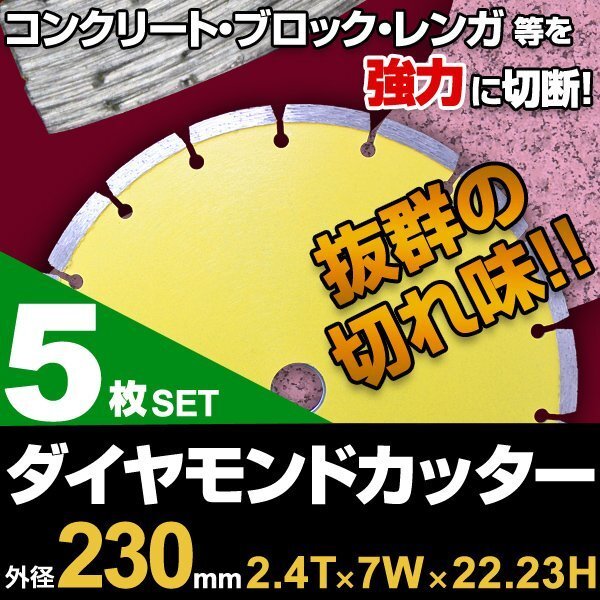 > 【5枚セット】ダイヤモンドカッター 230mm セグメント 乾式 コンクリート ブロック タイル レンガ カッター 切断用 刃 替刃