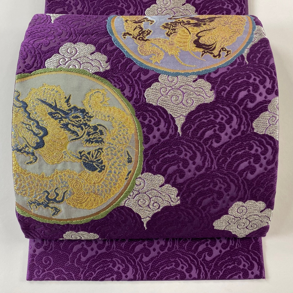 - 袋帯 逸品 山口美術織物 落款 龍の丸文 雲文 金銀糸 唐織 紫 お太鼓柄 正絹 【中古】