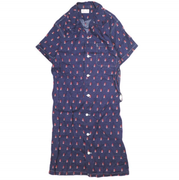 - BEAMS BOY ビームスボーイ 日本製 ヨット柄シャツワンピース 13-26-1100-086 ONE SIZE NAVY 半袖 開襟 オープンカラー トップス g13674