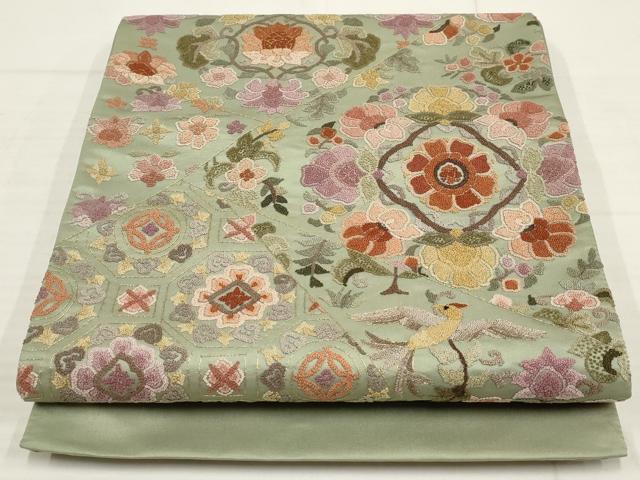 > 平和屋着物▼中国三大刺繍 相良刺繍 袋帯 切嵌花鳥文 金糸 正絹 逸品 AABB4638wj